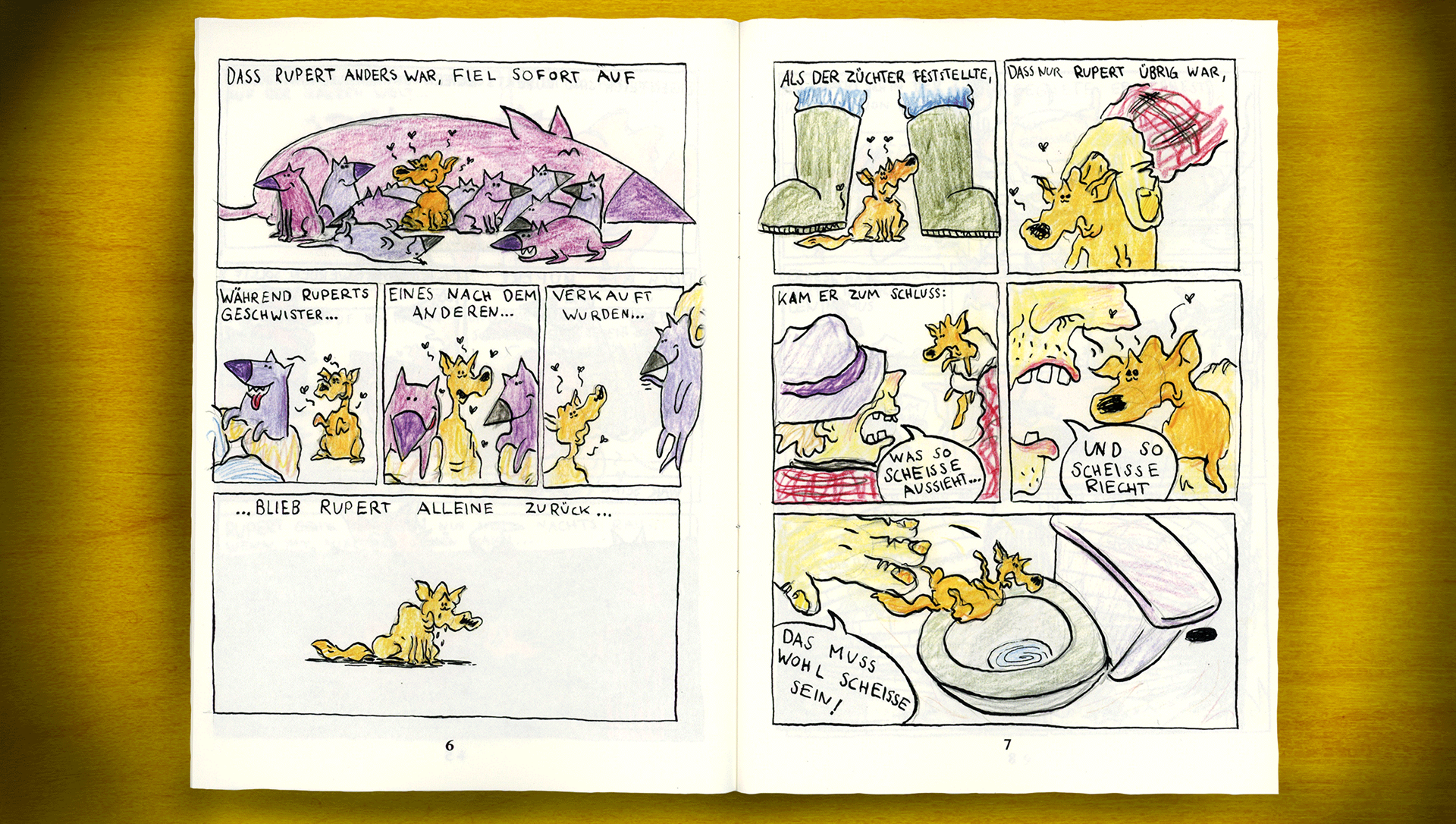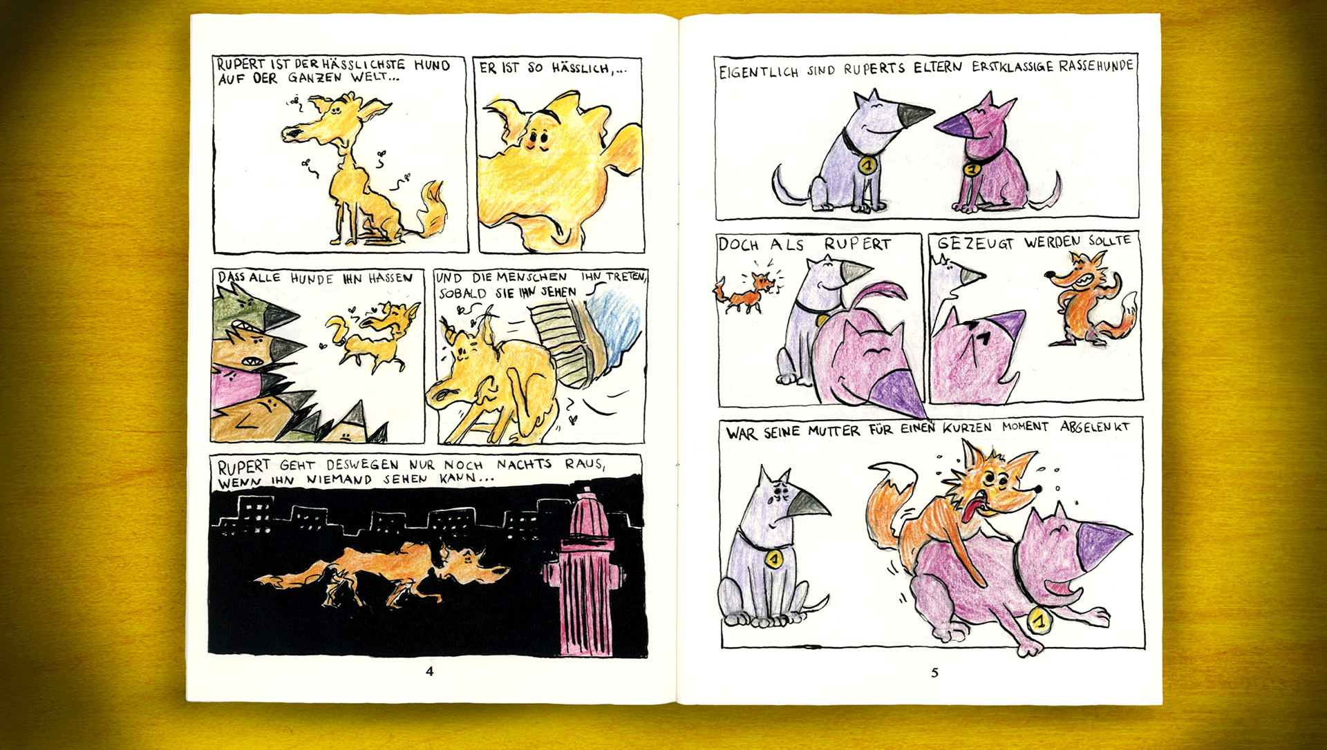 Rupert is the ugliest dog on the whole wide world and that doesn't make his life easy. "Rupert" is a self-printed 24-page comic. The story was created at the 24 hours comic-challenge at the Alte-Kaserne Winterthur, where you have to draw a 24-page comic within 24 hours. You can buy the full comic at www.studio-uuuh.ch/shop